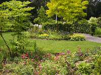 borders lijken de vorm van de er achtergelegen rhodondendrons te