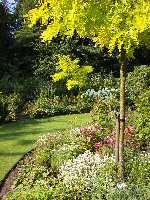 zijn vooral de zachte tinten die in een tuin met veel door bomen